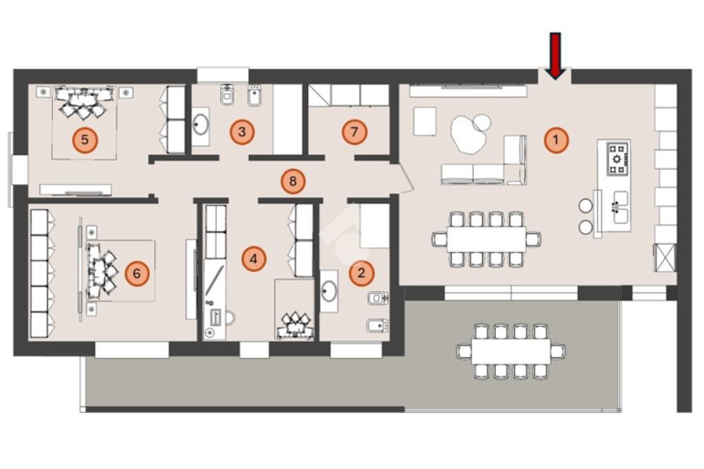 La soluzione proposta è un quadrilocale al piano primo, dotato di ascensore, caratterizzato da un’ampia zona living di 40 mq, tre camere da letto di cui la padronale di oltre 16 mq, due bagni ed un vano tecnico adibito a lavanderia.
