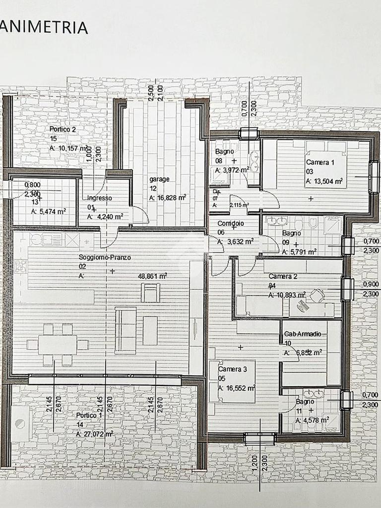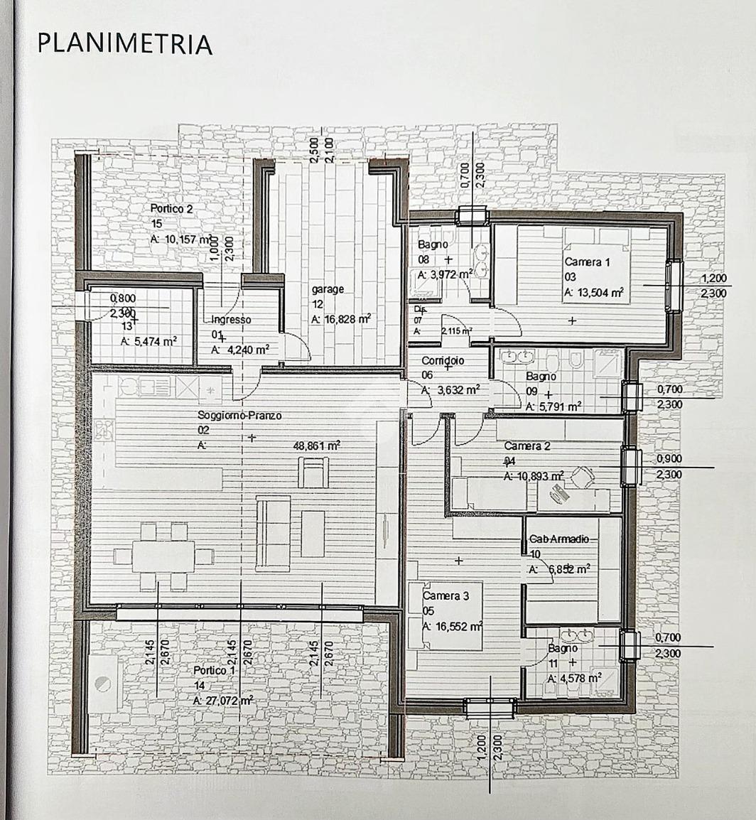 L'immobile è composto da un comodo ingresso che porta alla luminosa e generosa zona living con angolo cottura di circa 50 metri quadrati dalla quale è possibile accedere ad un ampio portico esposto a sud, ideale per pranzi e cene all'aperto.